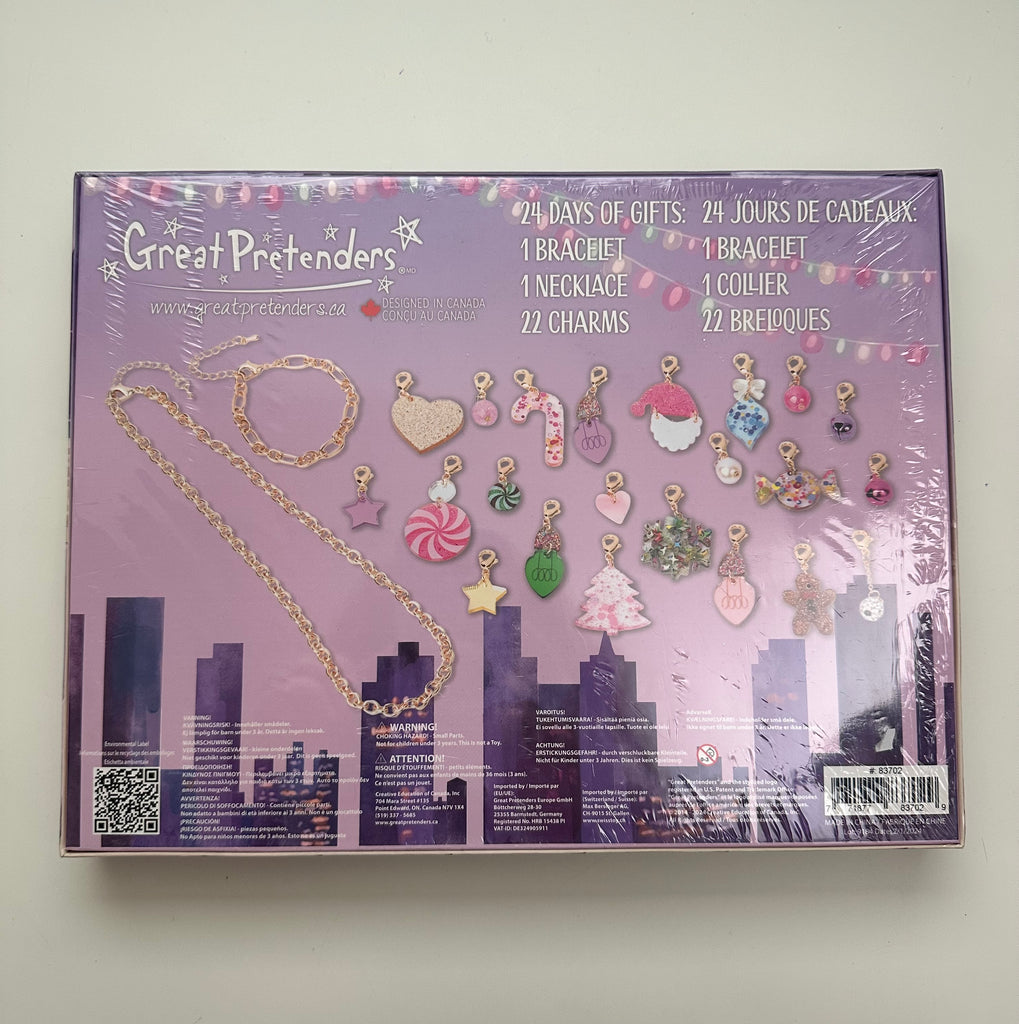 Bellissimo calendario dell’Avvento con 24 caselline che racchiudono simpatici charms che potranno essere inseriti nella collanina e nel bracciale a sorpresa. Così da poter avere due bellissimi bracciali da sfoggiare a Natale.