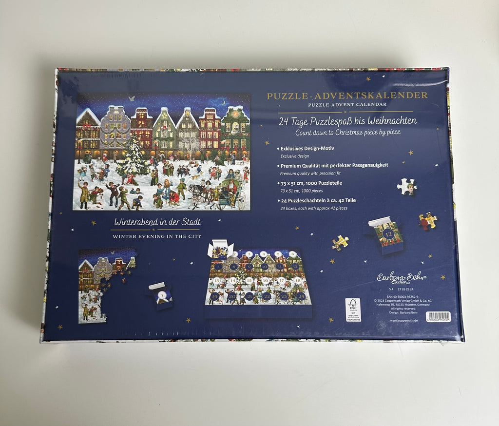 All’interno delle 24 caselle, troverete ogni giorno 42 pz per comporre il puzzle finale da 1000 pz. Dal sapore vintage, dedicato al Natale.