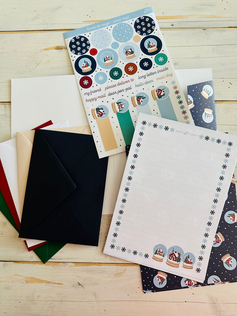 Romantico set di carta da lettere per le amanti della cartoleria, Paper plane ha dedicato questo design al Natale e ad uno degli oggetti più iconici, la palla di neve.